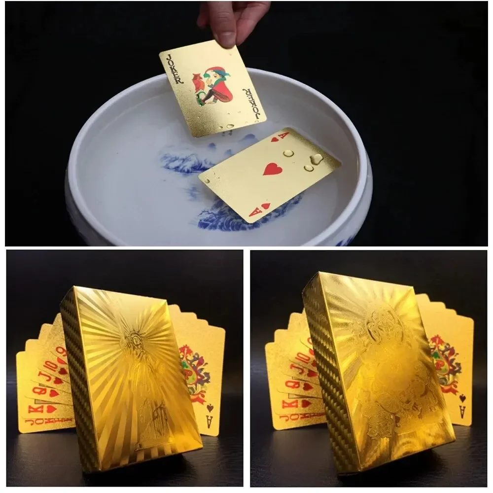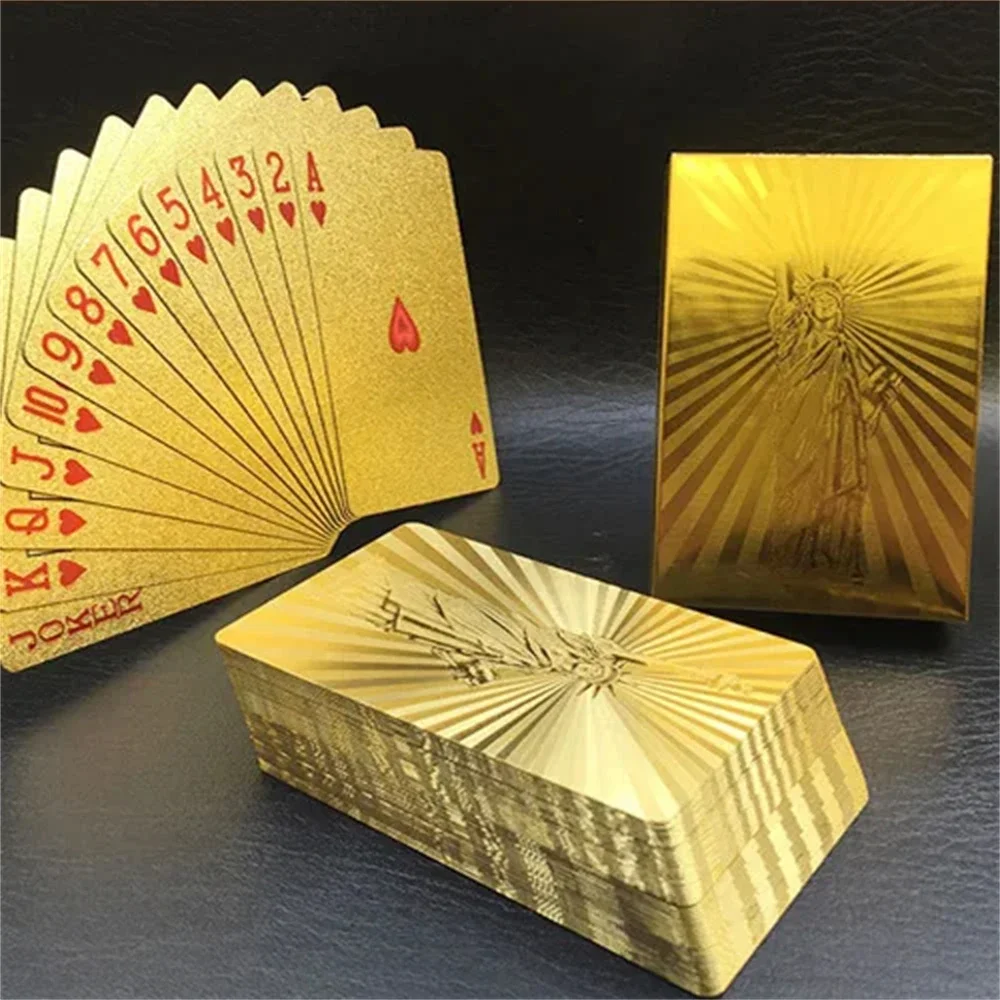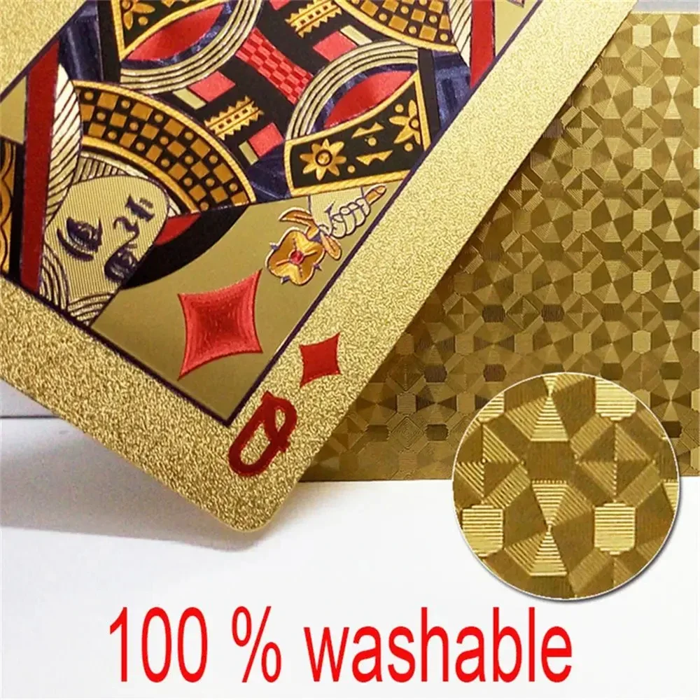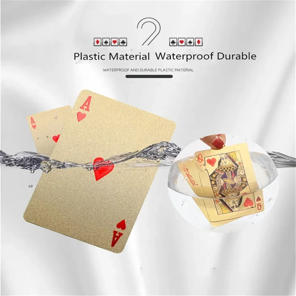 55pcs Golden Playing Entertain Cards Gold Foil Pokers Set Magic Cards 24K Gold Plastic Foil Pokers Durable Waterproof Cards