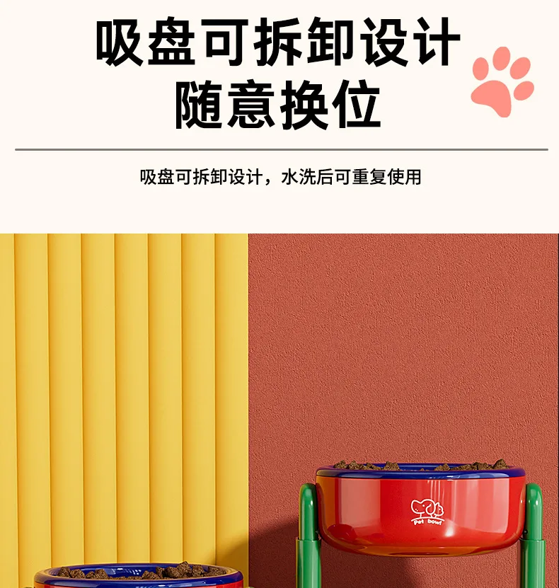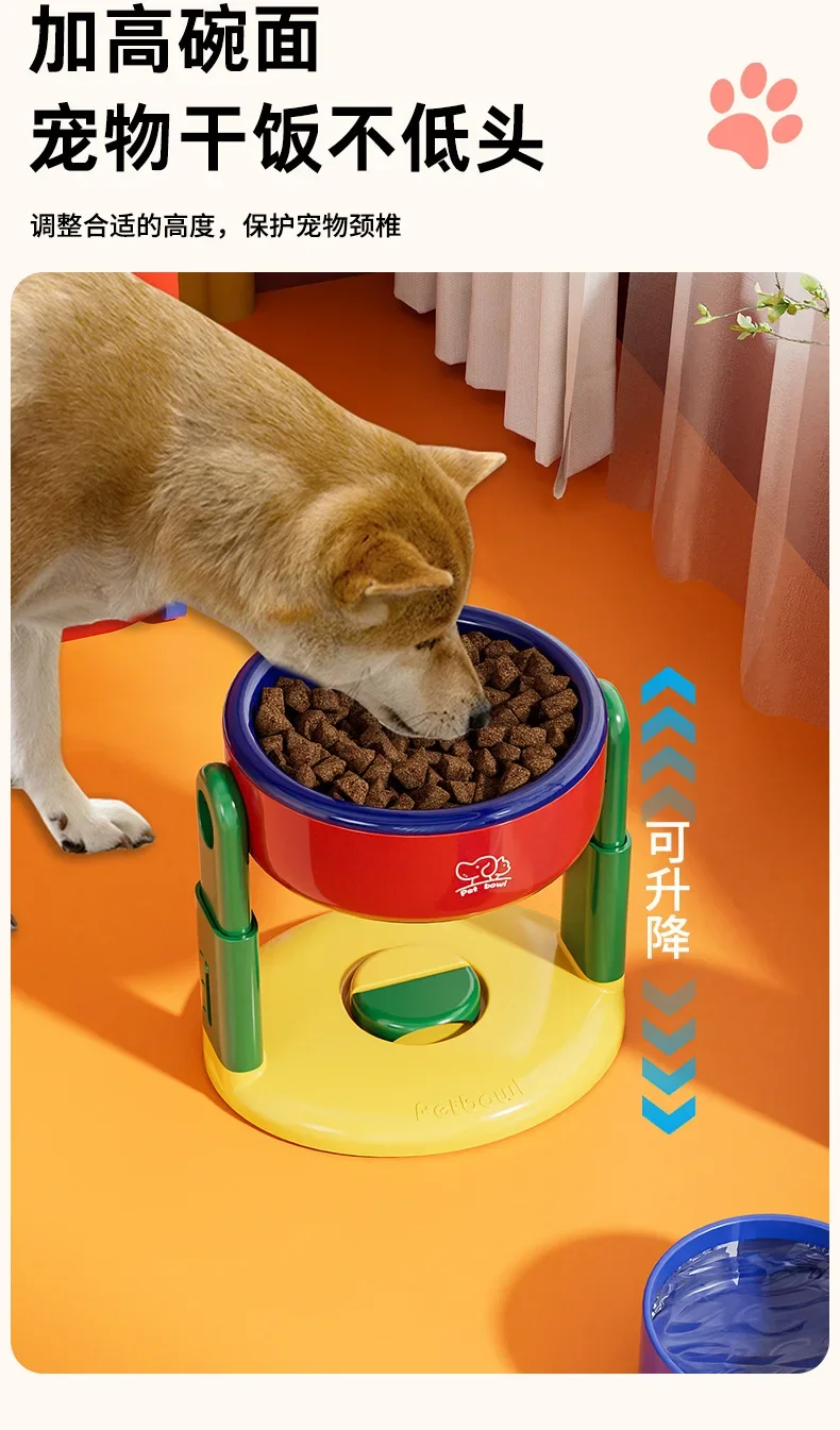 Adjustable dog bowl cat bowl with suction cup anti knock pet bowl universal protection cervical spine dog food bowl water bowl