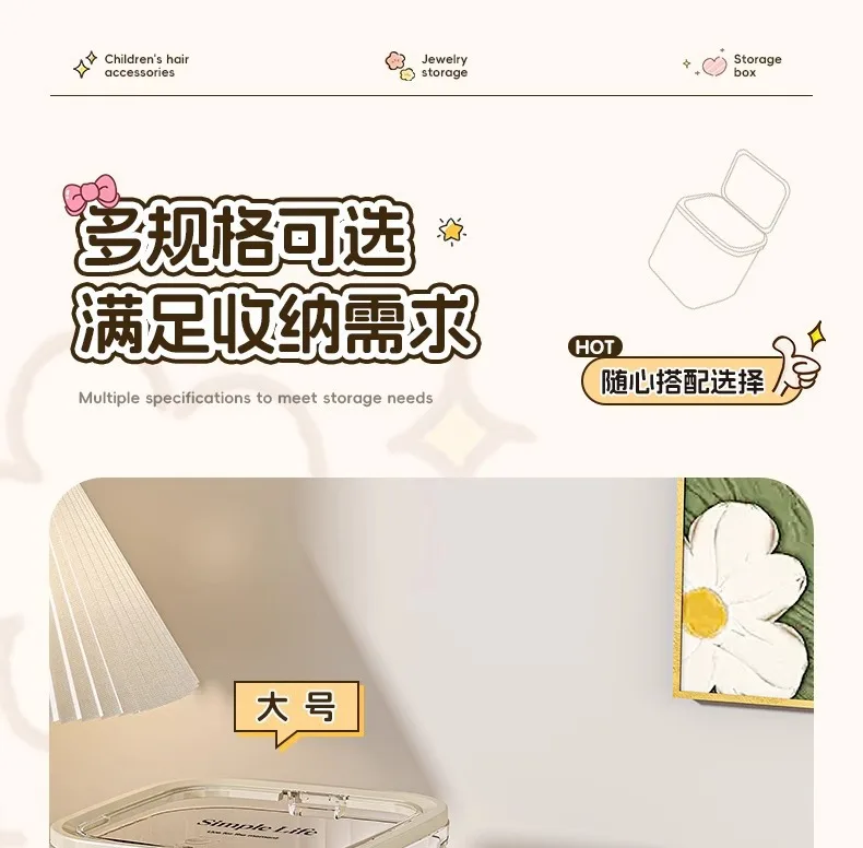 Creative student hair accessory storage box, desktop jewelry box girls rubber band headband hair clip storage and organizing box