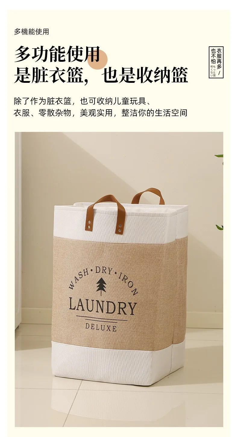 Home dirty clothes basket foldable imitation linen dirty clothes storage basket printed image two handed clothes basket