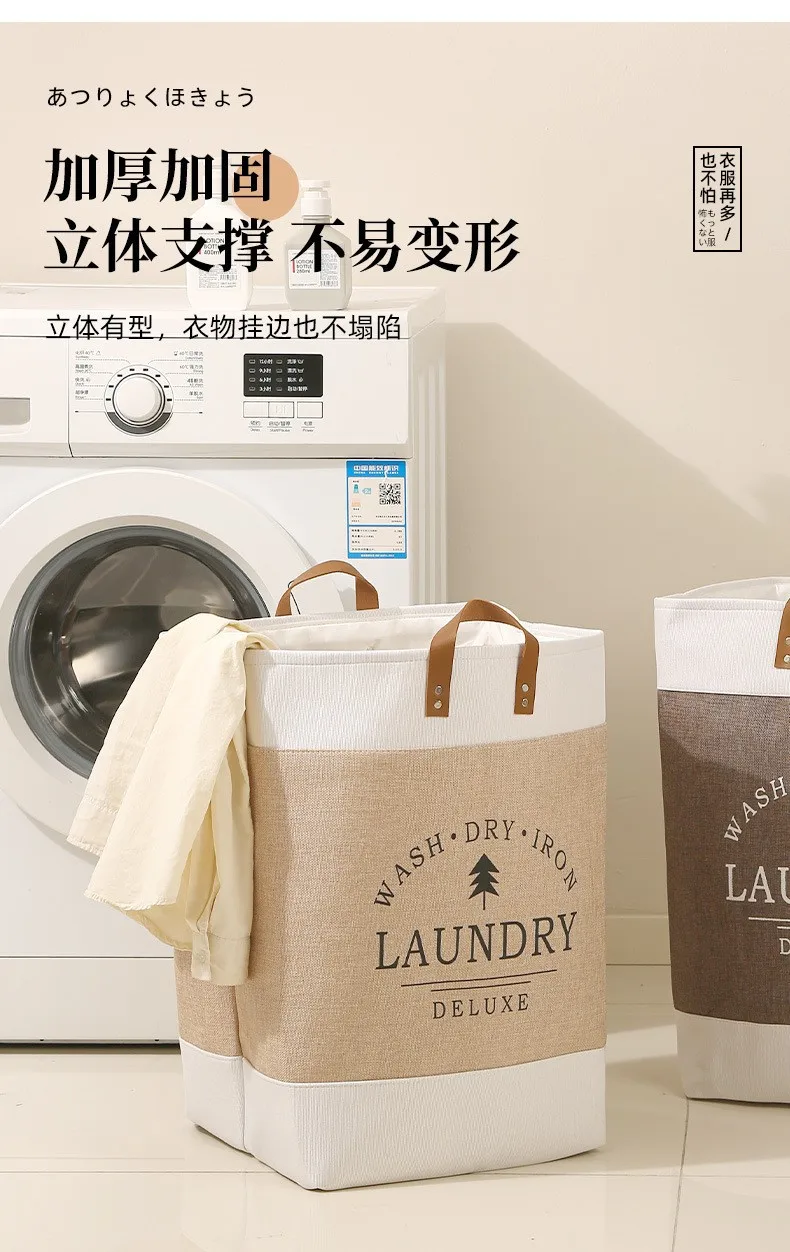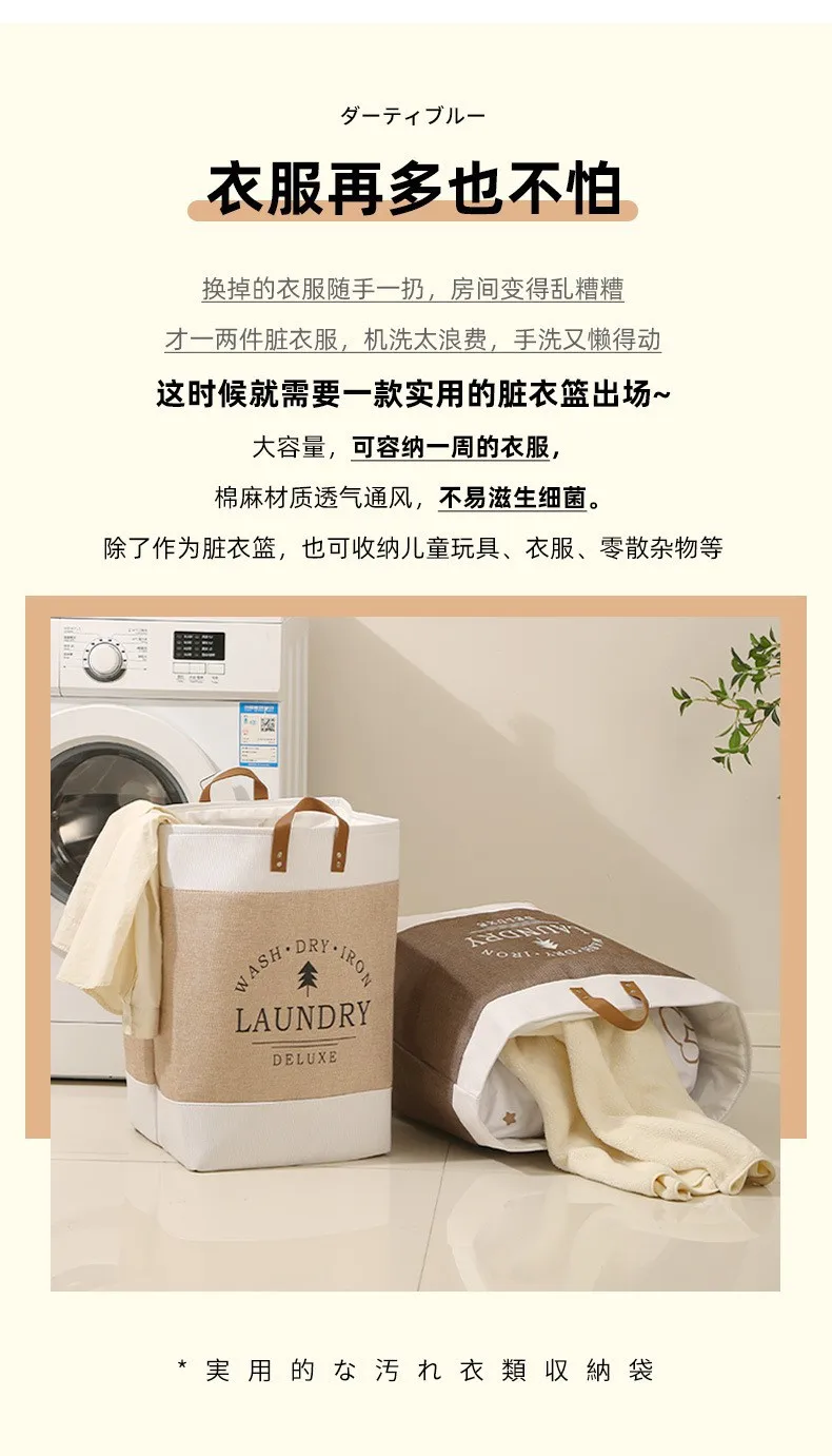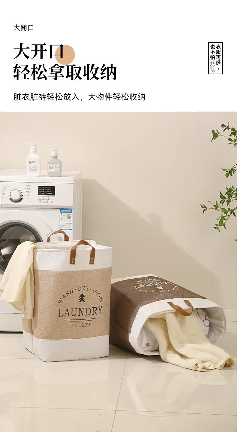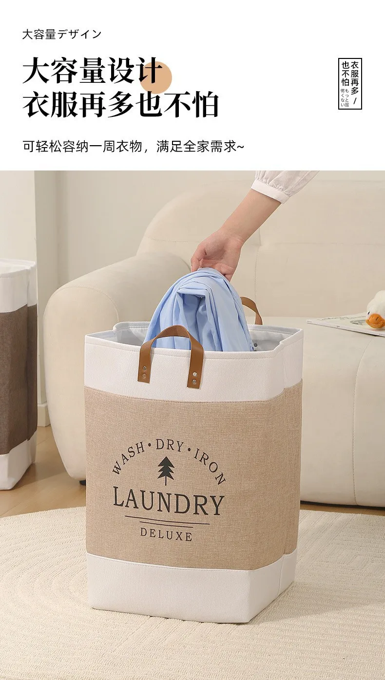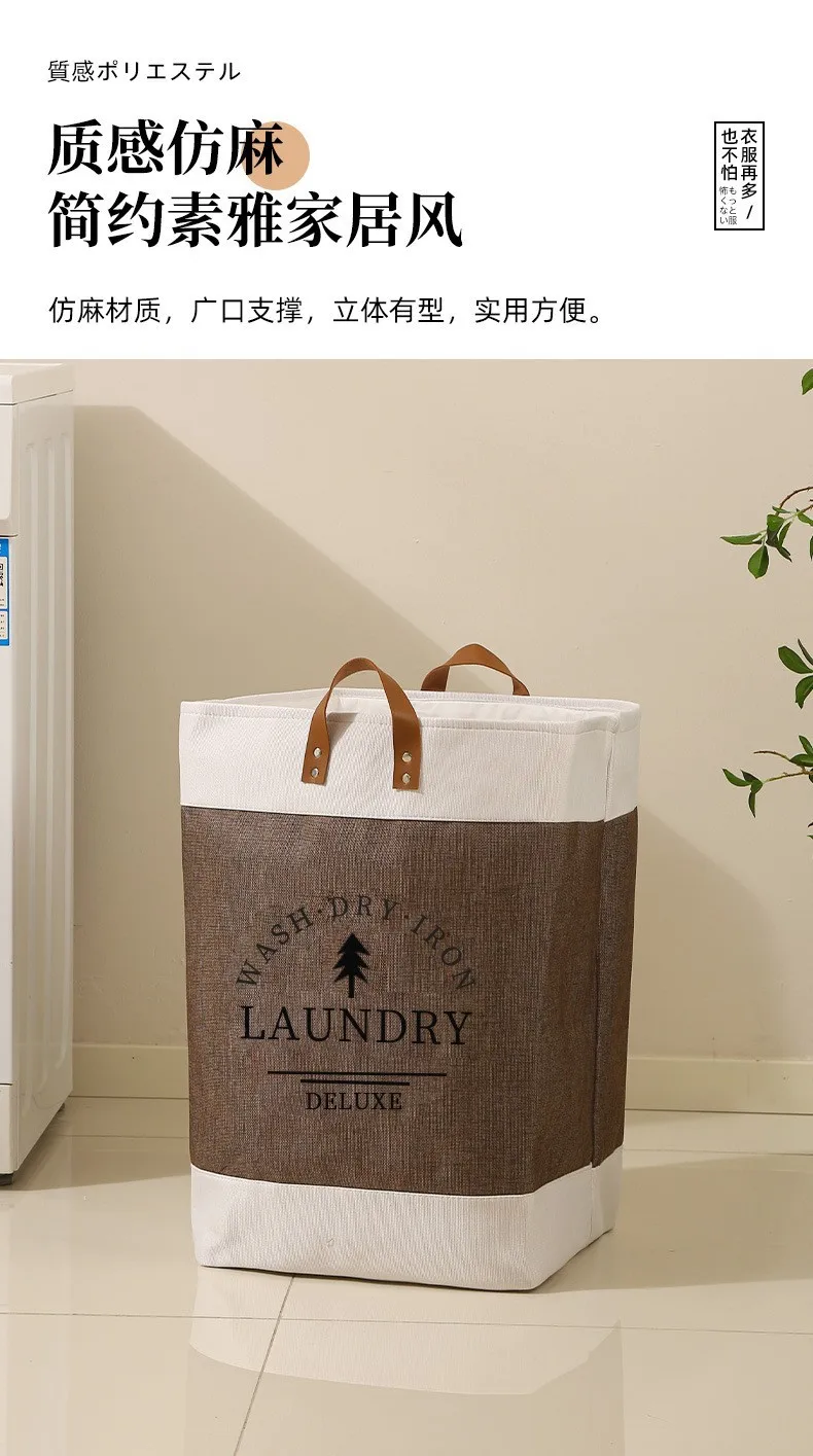 Home dirty clothes basket foldable imitation linen dirty clothes storage basket printed image two handed clothes basket