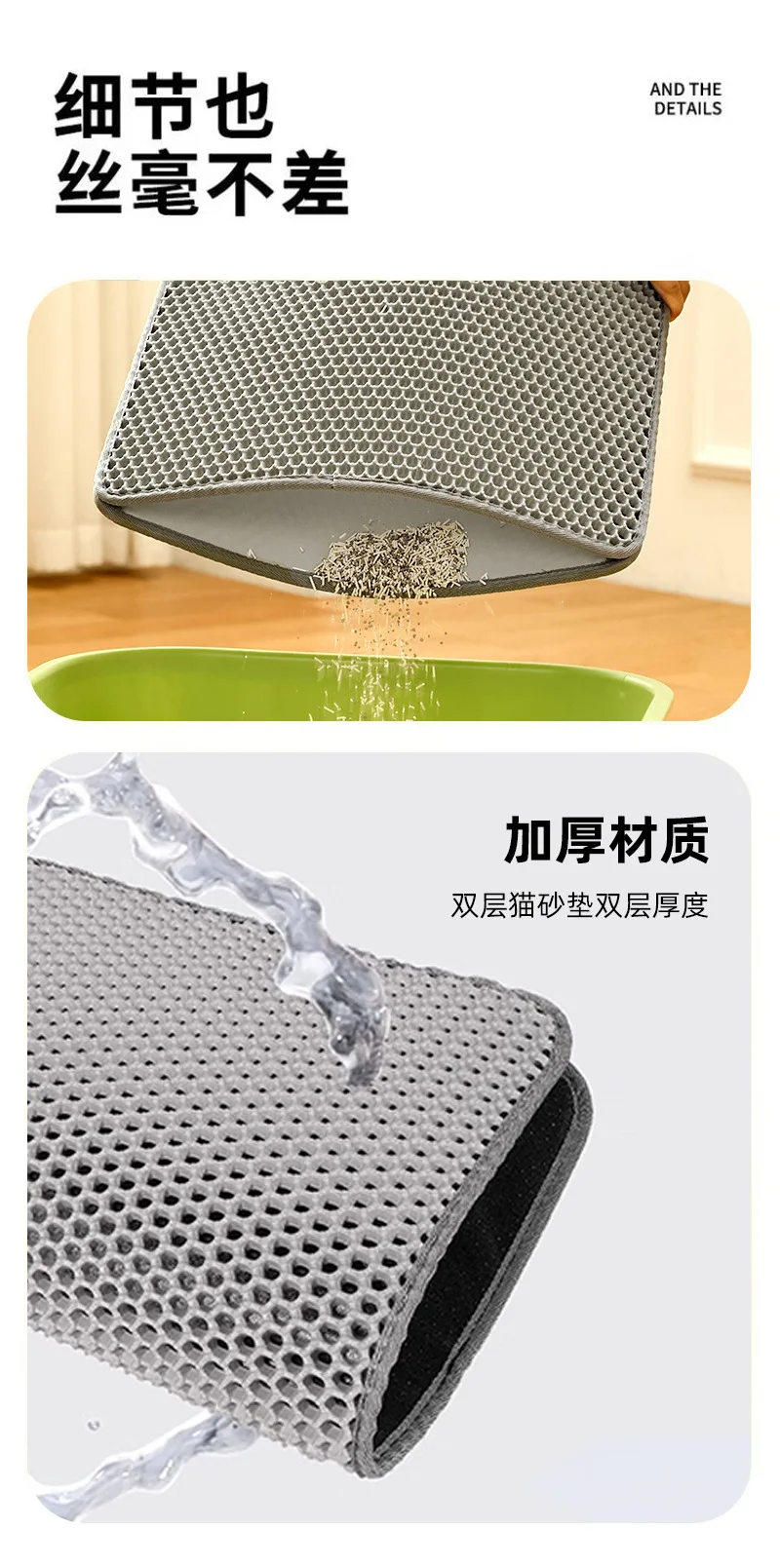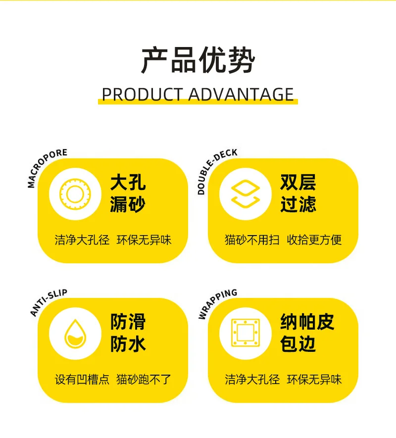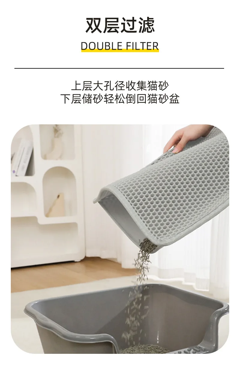 Pet litter pad with double-layer filtration and anti stripping feature washable and sand controlled detachable Velcro litter pad