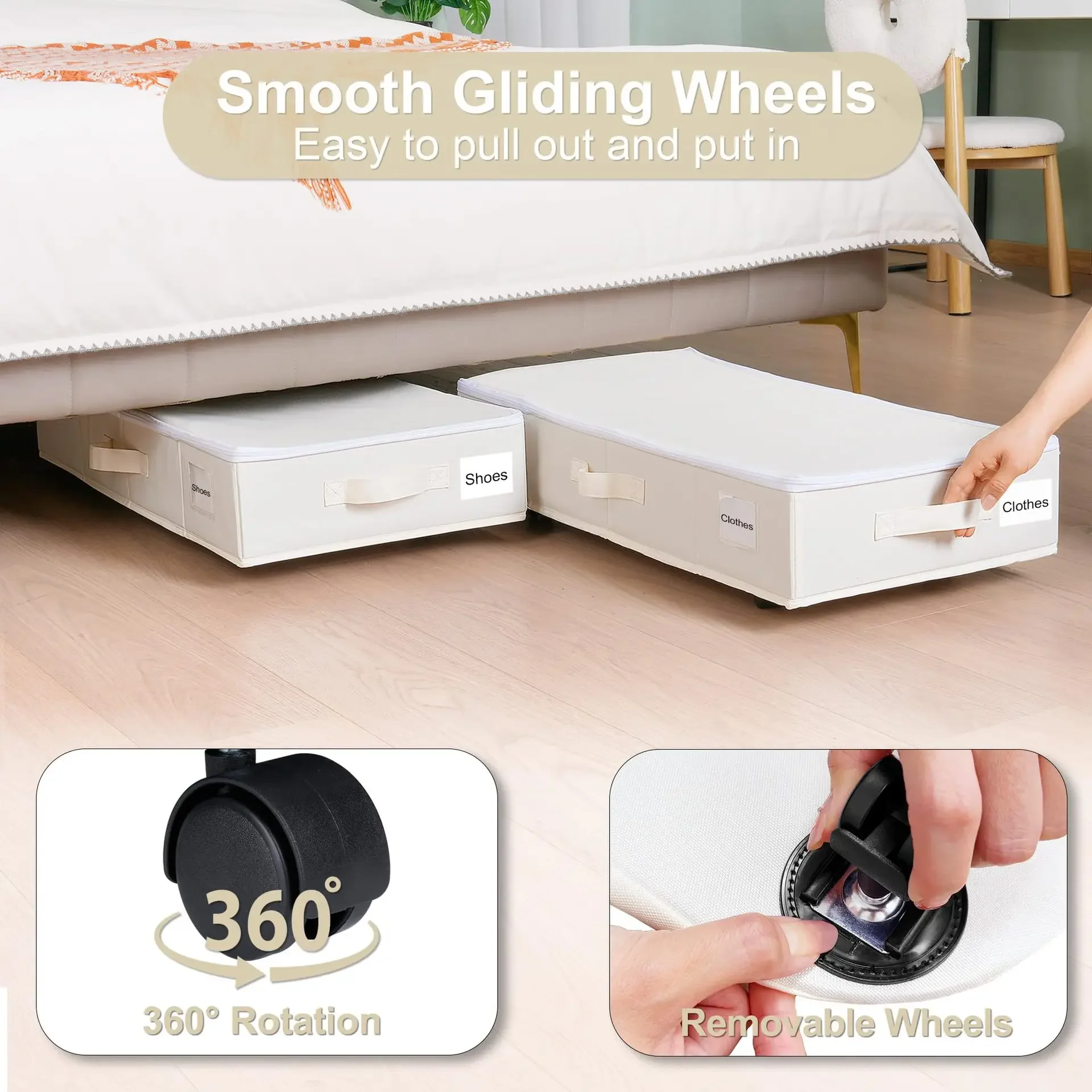Underbed Rolling Storage Box Large Portable Foldable Wheeled Dustproof Home Space Saving for Travel Clothes Mobile Organizer